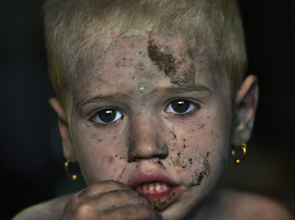 A little girl was found by Iraqi Army soldiers when they saw her walking naked in the rubble at the frontline. She was believed to be a foreigner, her parents most likely ISIS fighters killed in the battle or by suicide bomb, it was difficult for medics to determine exactly. She was given emergency medical care at a Trauma Stabilization Point with Iraqi Army medics on July 17, 2017 amid ruins of the Old City. The battle with ISIS continued in a small part of West Mosul even though it was declared liberated a week ago. Injuries from suicide bombers, grenades and snipers occurred as ISIS fighters use tunnels to continue the fierce conflict.